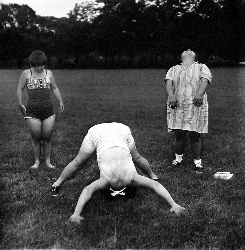 边缘人士是 Arbus 常常拍摄,并在人生后半段更加着力拍摄的人群。我想在 Arbus 看来,边缘人士承受更大的苦难,以至于没有什么更大的苦难等着他们。他们不担心,不惶恐,不去遮饰自己。这种巨大的反差正是 Diane Arbus 着重表达的。是的,面对生活,他们更加淡然从容也更加具有勇气。