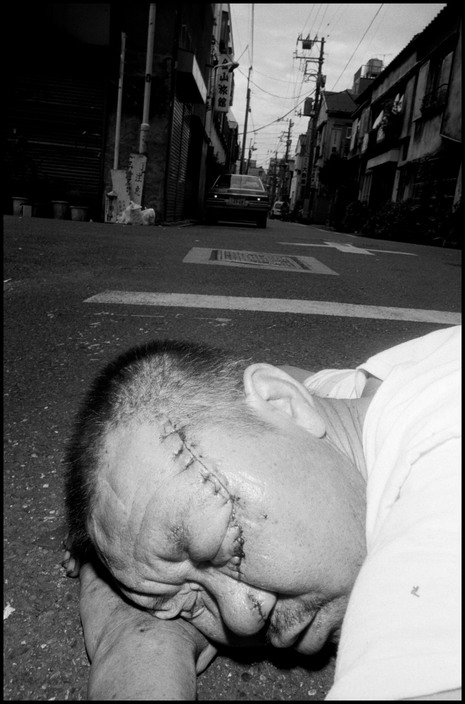Bruce Gildn 有几个标签化的东西,如他是黑帮子弟,擅长拍摄黑帮等。这些标签宣传者可以上 UC 编辑部报道了。其实在《GO》这部描述日本阴暗灰色二十世纪末的画册中,对于日本黑帮雅库扎的展示只占其中一部份,并且是 Gilden 事先沟通好后才拍摄的。剩余部份还有无神的上班族,迷茫的少年暴走族,处境可怜的无家可归者,满面悲苦的易装癖等。我认为