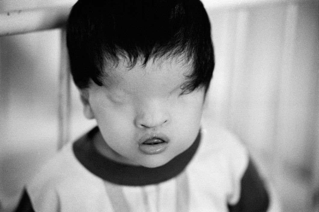 按照Magnum官网的顺序这是第二张照片。因为橙剂的污染这位母亲的两个女儿天生失明。在三双眼睛联成斜线的中点,母亲的眼睛传递了太多无法用言语表达的内容。这个家庭的前路如同两个女儿的双眼一样模糊不清。
