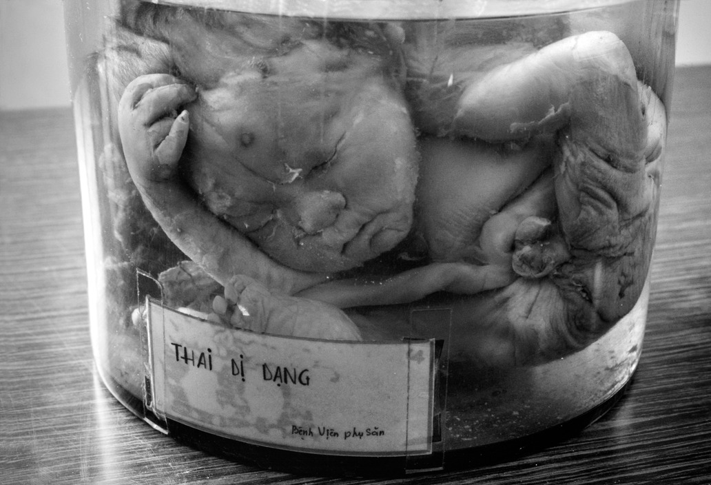 战争的诅咒并没有因为因为时间的推移而消散,在越南不断地有畸形儿童出生。有的已经早早夭折,有一些被保存在医院当做标本。这些人类创造的“奇迹”或许让超现实主义者观看这惨状也会惊叹人类的创造力。